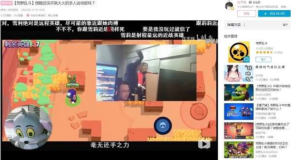 而游戏领域知名UP主“庄不纯”早已率先体验了《荒野乱斗》海外版,并第一时间创作了一期诙谐搞笑的评测视频。在视频中他介绍了游戏的玩法,很多粉丝似乎也是早已对这款游戏有一定的了解,纷纷在弹幕留言互动。