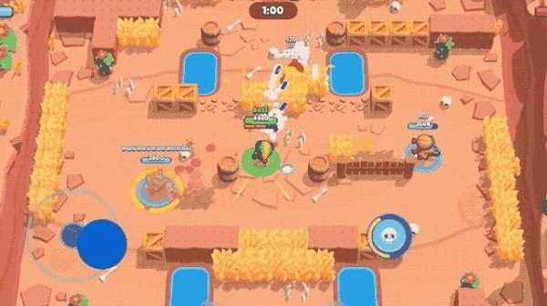 另外,还有类似于吃鸡的「荒野决斗」模式,游戏中会有不断缩小的毒圈,有些类似于热门游戏《绝地求生》,不过《荒野乱斗》中一局只有10人。