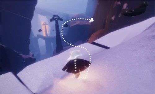玩家从向导这里直接往前走,然后在左边,可以看到如图所示的场景。此时直接飞上来即可。