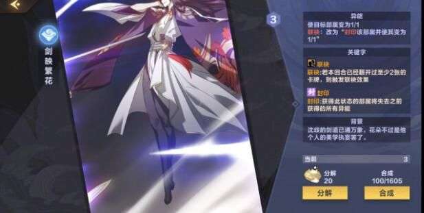 这是水属性目前唯一的红卡,本体5/7+天剑4/4的身材绝对能比得过7费标准8/8白板身材,还额外附带敌方全体-2攻的效果。但是比起其他属性的红卡来说,他在水属性的灵剑体系中也只是个凑数卡而已,根本不能起到定胜负的作用。