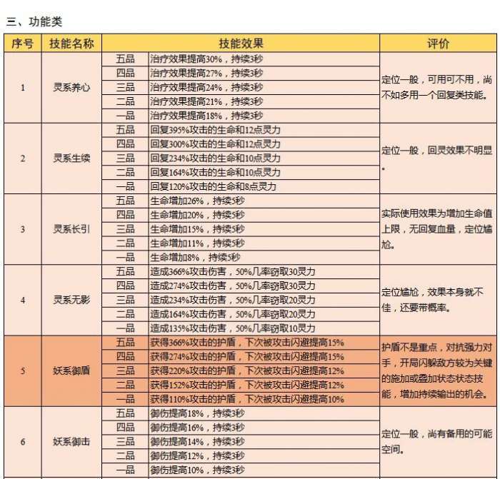 从技能总览里可以看到,灵系主加血,妖系主护盾,魔系主伤害,鬼系主吸血。