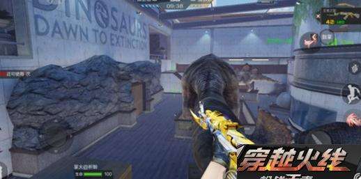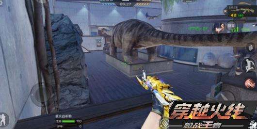 广场上视野开阔,还有恐龙模型能为我们遮挡子弹,所以特别适合狙击手卡点。如果你是个狙击手的话,可以在下图中的位置打狙,恐龙模型下面的石台就是最好的掩体。狙一下再躲回来,敌人很难对你造成伤害。如果对面也采用这样的战术怎么办呢?往他们中门附近的位置丢几个烟雾弹就OK了。