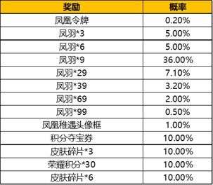 2、凤凰令牌兑换稀有奖励:不同数量的凤凰令牌可兑换对应的奖励,包括李白-凤求凰,王昭君-凤凰于飞,以及凤凰偕飞专属特效礼包等,详见最后兑换商店;