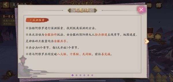 *深渊战场由大量区域所组成,在此阴阳师大人将助力阿修罗收集灵神体碎片,激活凝罪塔,突破深渊,为最终与帝释天的决战做准备。