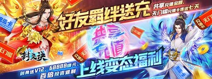 《封灵诀(共享无限充)》是一款唯美3DMMORPG仙侠游戏,新版本福利加强,上线即送VIP12,升级免费激活白金仙尊卡直升VIP15,三张仙尊卡全激活直升VIP25,升级冲战两不误!独创羁绊送充活动,约上好友同行,共享充值金额!不仅上线就送无门槛充值空投礼包,休闲活动还爆充值卡,还有缠绵悱恻的仙侣系统,和道侣一起双休养娃,让你的修仙之路不寂寞,轻轻松松升级打怪走上人生巅峰!!