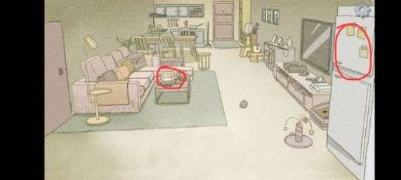 2.趁着老公不在,我就要开始“破案”了,画红圈的都是线索,这里先点击冰箱拿上盘子。