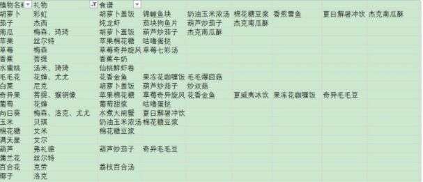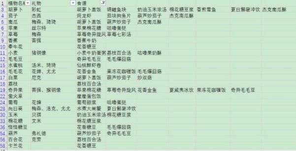 可以做一道菜的:香蕉(特产)、牵牛花、水蜜桃(特产)、荔枝、萤火草、棉花糖、百合花、卡兰花