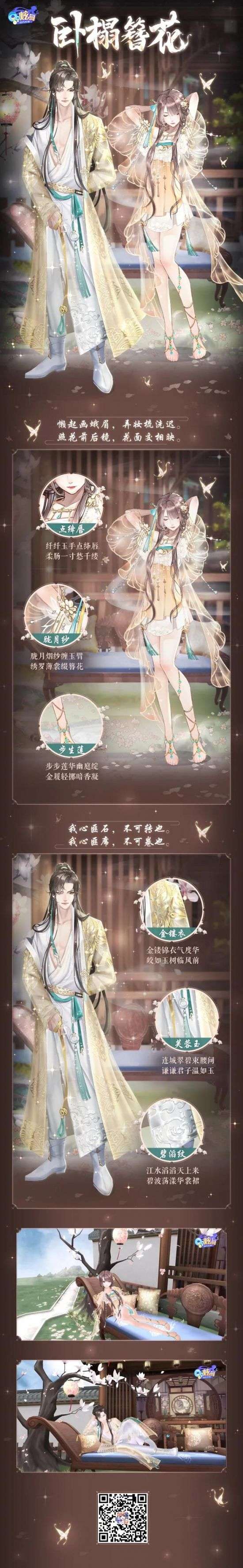 全新情侣臻品套装-卧榻簪花将会在现已上架【幸运邮轮-甄选之礼】哟!梦里花落知多少,这套灵动绝美的古风小睡衣就等着收入舞者们的衣橱啦~