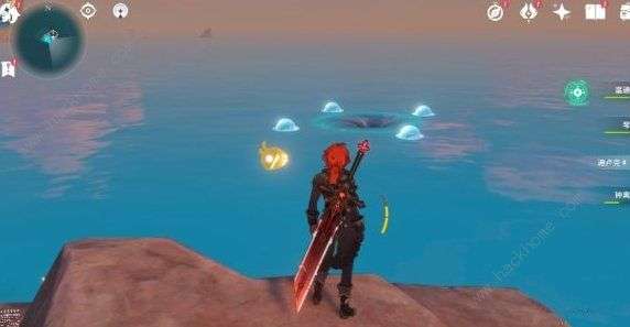 2、点燃三个火把之后我们发现找不到第四个火把,那怎么办呢。我们看看海上有一个冒着气泡的漩涡。靠近这个漩涡,我们就会被吸到海底去。