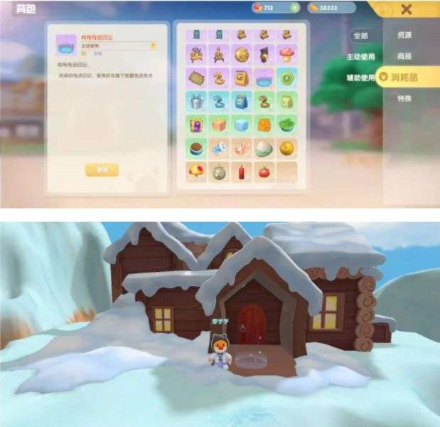 第二步,前往自己想要的传送起点,在主界面打开自己的投掷道具,使用【向导的传送蘑菇】,即可在自己附近放置自己的传送蘑菇作为传送起点。