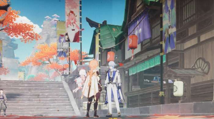2、我们在范围中到处逛游,先找到偏【八重神子】对话了解那个人的信息,然后会再去台阶附近,就可以找到【神里绫人】的NPC,与其对话即可完成任务了。