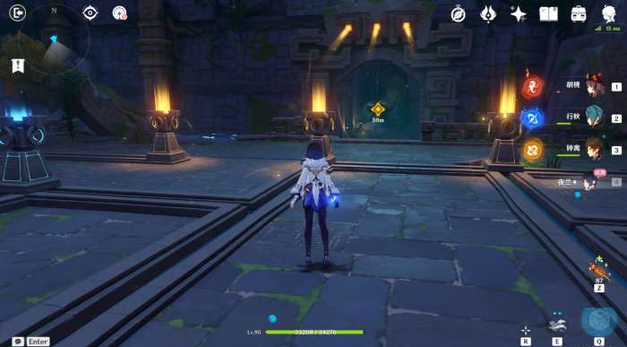 连续开两扇门后,可以看到火深渊法师和丘丘人,击败它们后往右走。