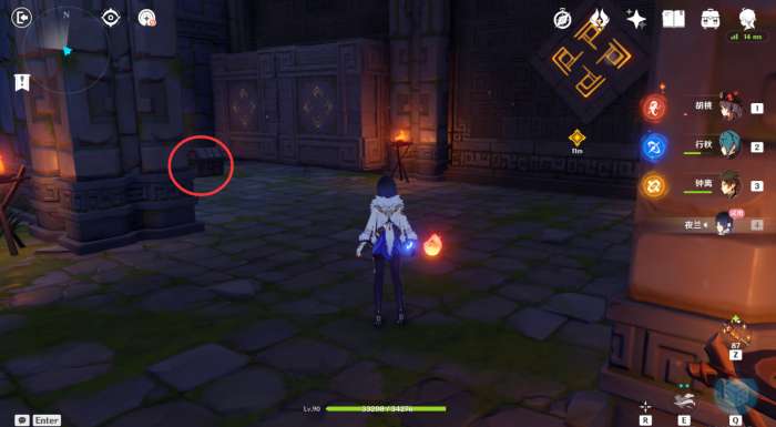 推开石门后,里面有个普通的宝箱,这是宝箱⑥。完后,把石门移动回来,然后我们回到入口。