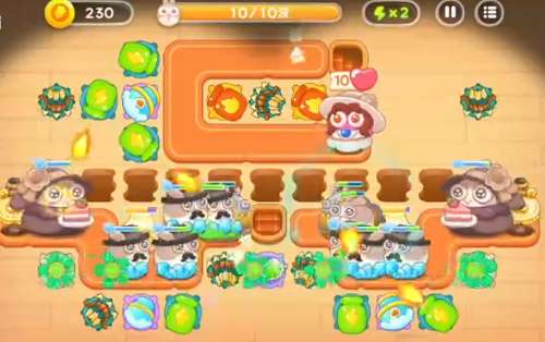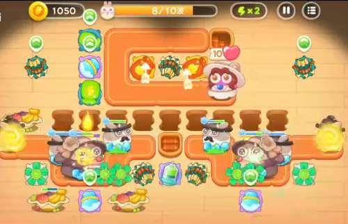 这里出兔子的数量多,种类也多,像贵妇兔、滑板兔都会密集出。应付的方式是一定要间隔建雪球,保证兔子一直在减速,剩下的就是建炮塔了。