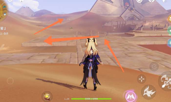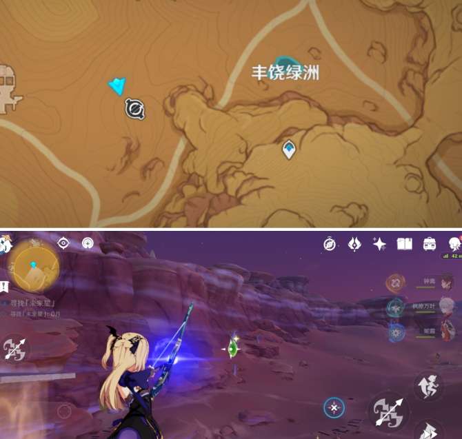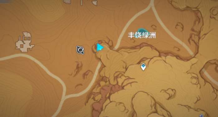 据任务提示,来到沙漠地图的(丰饶绿洲)区域,如图山丘位置: