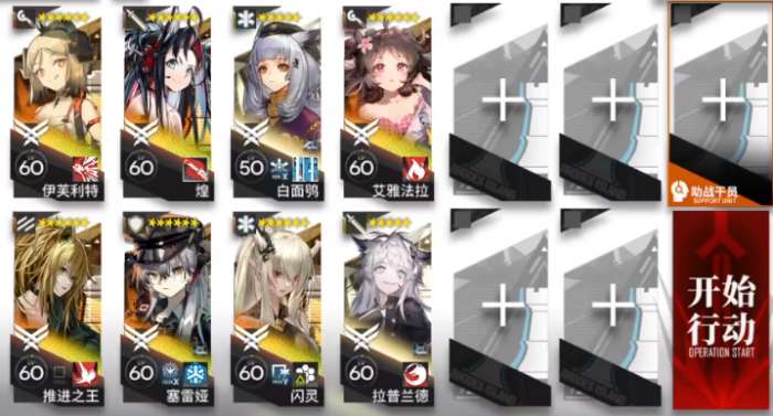 近卫:煌(地面输出)、拉普兰德(远卫+沉默)