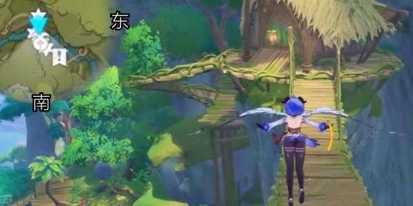 3、然后一直朝着东方向移动,可以看到一个茅草屋,在里面可以找到欢兴礼券。