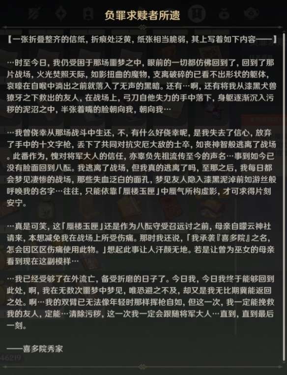 以上就是关于《原神》负罪求赎者所遗作用介绍的全部内容了,希望可以帮助到有需要的玩家掌握具体的信息。