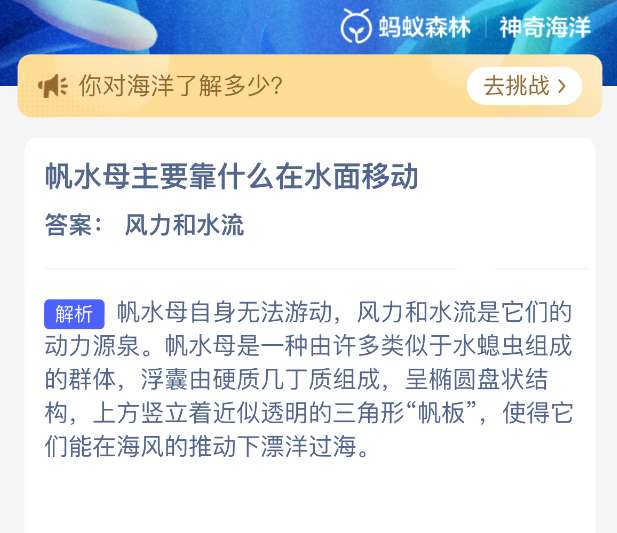 以上就是帆水母主要靠什么在水面移动?神奇海洋今天答案最新2025年12月1日分享,更多相关攻略内容,请点击关注pk游戏网更新!