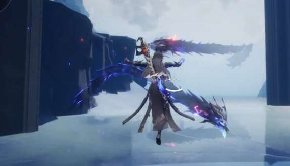 被动方面,煜明的技能和下落攻击打到敌人的时候会触发一个叫"弃身"的层数效果。这个效果最多能叠到十层,叠层之后暴击伤害会提高,下落攻击的攻击力也会跟着上涨。也就是说,打得越积极,层数叠得越多,输出越强。这套被动和他的技能配合得很好,增益技能跳起来落下去、配合玄蛟的特殊攻击,每一次都能往上叠层,打着打着伤害就起来了。