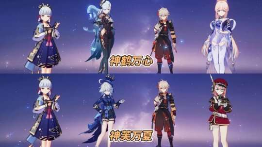 由于此次神里绫华复刻并未伴随申鹤心海登场,在配队方面硬套‘神鹤万心’是不太合适的,因此为新入手玩家推荐一支新队伍‘神芙万夏’,其中万叶可替换为其余具备聚怪机制的风系,如琳妮特、砂糖等等。