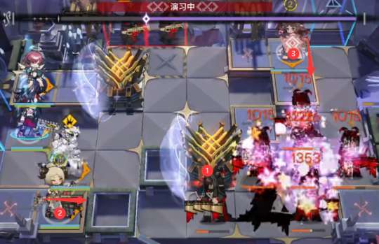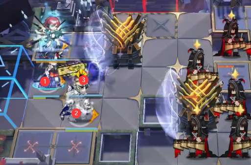 开局直接摆放能天使(向右),打死第一个小怪后如图位置部署<湮灭之相>。