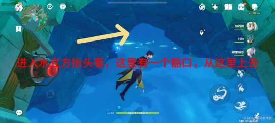 当到达水立方时,抬头会发现有一个开口,通过该开口即可上岸。需要注意的是,游泳时角度很关键,务必避免掉落出水立方。