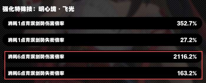 ②【观止】可叠加9层,外加每消耗1点【青溟剑势】获得1点【观止】,这使得小光在最后长按[特殊技]打出一个超高倍率[飞光],外加影画还使[飞光]与[斩妄开天]无视40%防御,整体影画提升非常大。