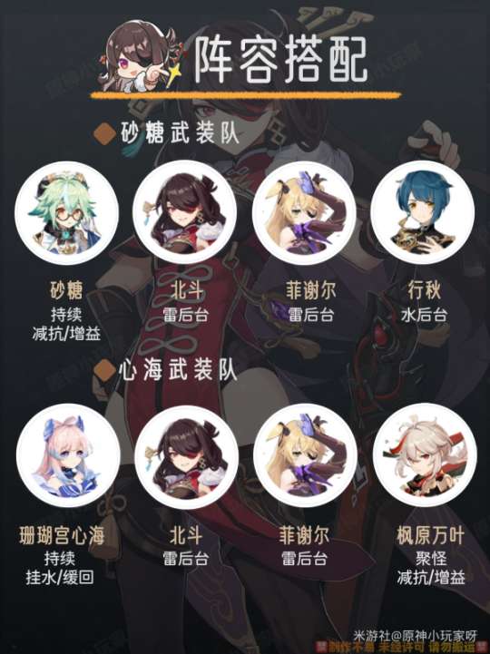 ① 砂糖武装队: 砂糖+菲谢尔+北斗+行秋
