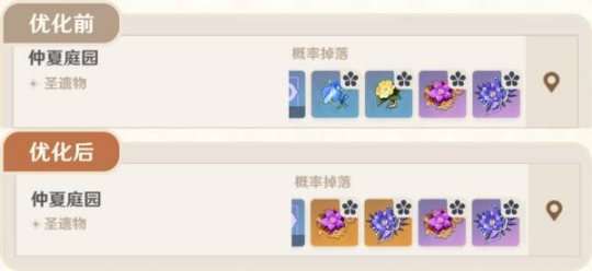 并且在新版本还会优化中材料排序展示,不分界面将会前置稀有度更高的养成材料,方便大家更快找到所需的掉落信息(包括冒险之证、秘境奖励展示预览)。