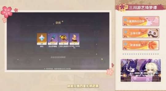 活动【三川游艺绮梦谭】限定武器,参与活动即可免费获得并精炼。