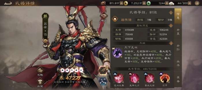 次月将星活动时,由于我们持续购买无双基金+超值活动的红抽,可攒够300红抽跑两轮活动,全部用于抽吕布。结合大卡池的“1000抽保底机制”+两期破军演武兑换,基本可将吕布拉至14星。