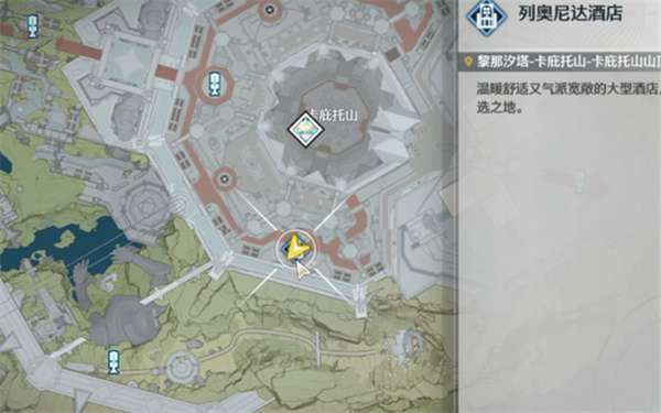 打开地图,先传送到七丘卡必拓山利奥尼达酒店。