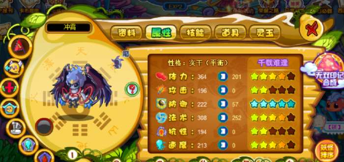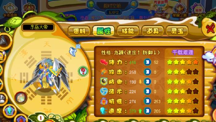 速度卡在301.抗性刷满,剩下给体力的东岳大帝(这里我为了打剑尊重刷了速度,不要在意)