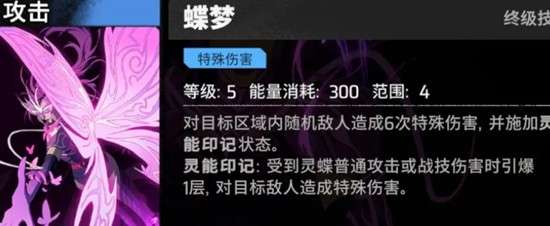 灵蝶的终极技能可在目标区域对一名随机敌人发动六次连续的特殊伤害攻击,并附加灵能印记状态。任何受到普攻或技能伤害的敌人都可能引爆该印记,造成额外伤害。这一机制使得灵蝶在群体战斗中具备持续输出能力,尤其在敌人密集或频繁受到攻击的场景下,灵能印记的引爆频率更高,伤害叠加更明显。需要注意的是,该技能无法手动选择落点,释放时机和位置预判尤为重要。