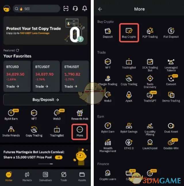第 1 步:在主页选项卡上,点击更多,然后点击购买加密货币。