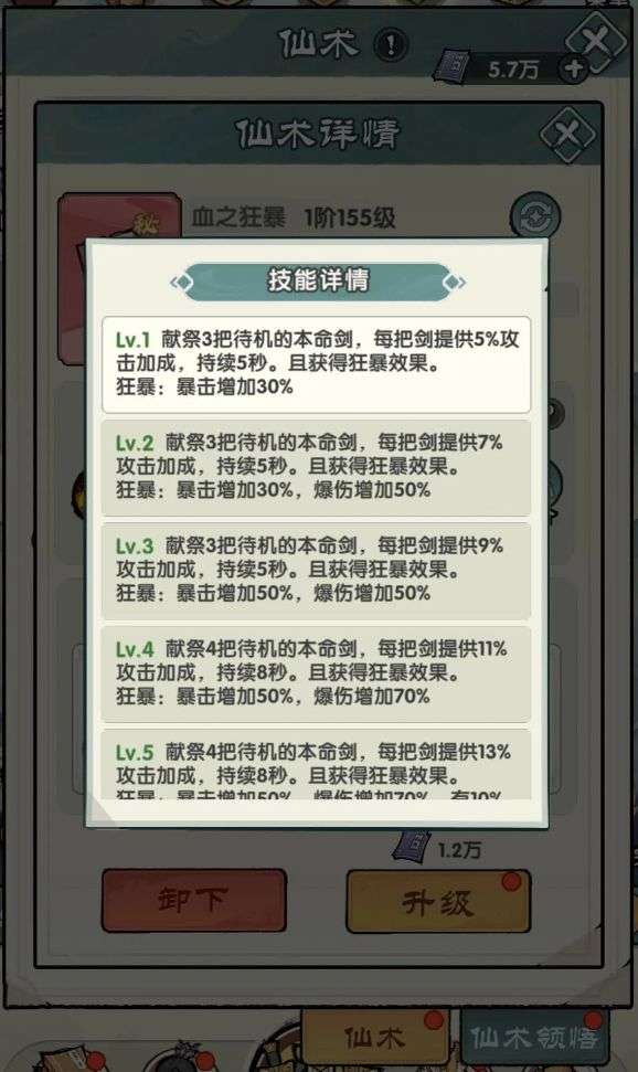 优先升级“血之狂暴”“暴击觉醒”等核心输出仙术;