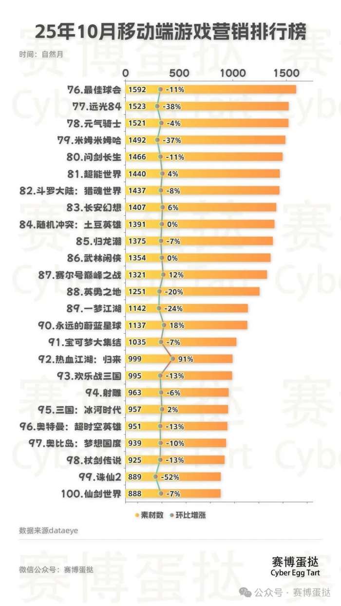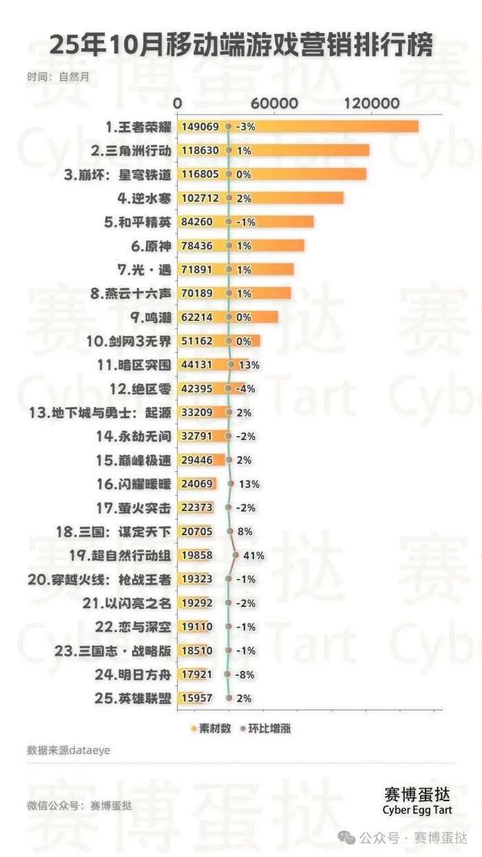 软件提交 专题合集 热门手游25年10月游戏营销排行榜TOP100!无畏契约、时空中的绘旅人、超自然行动组等涨幅居前~10月新游全部阵亡!