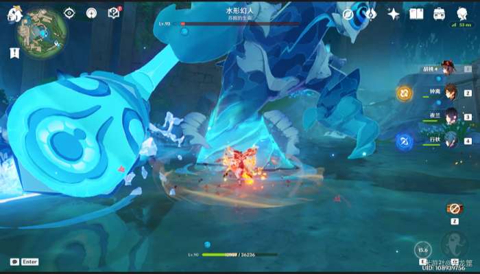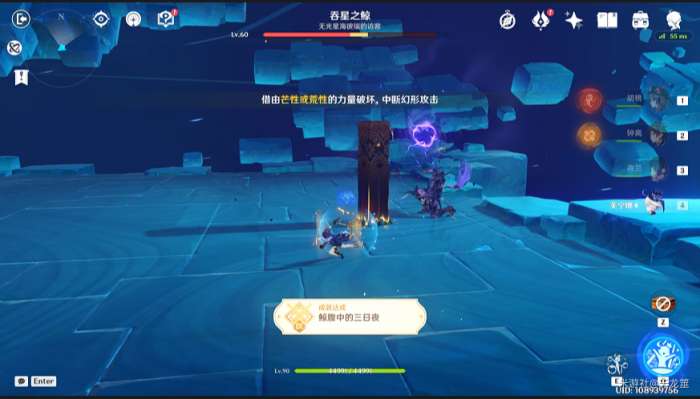 等BOSS进入水元素状态下,用冰将其冻结,然后用火元素或者大剑破冰即可将其瘫痪
