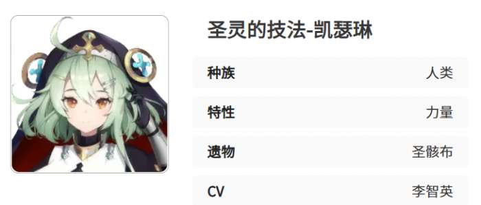 这一个遗物就是凯瑟琳的,作为太阳骑士团的一位专属辅助者,靠全方位的保护能力,就可以成为团队续航的核心保障。无论是持久战还是高爆发对战,凯瑟琳的回血技能,防护罩还有双抗加成可以给队友构建生存壁垒,是必练的守护型精灵。作为人类种族,职业属于纯保护辅助。核心的优势就会集中在群体防护罩,双抗增益,范围回血,完美适合各类需要稳定生存的战斗场景。1米56的娇小体型下面也会隐藏着较强的团队保护能力。比较喜欢的是肉菜汤,不喜欢吃燕麦粥。