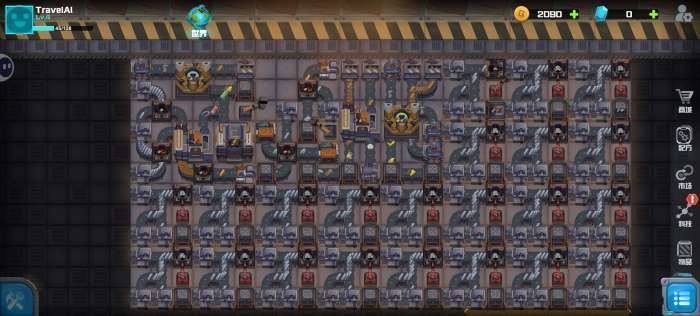 4、参照图6,空地都按图5摆上钛块模块,边开地边存够3亿金币。优先把所有钛块箱子升级到3级,再升级铁矿和夹子。否则很快箱子就满了。