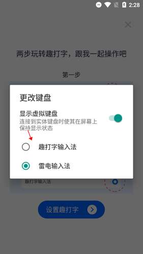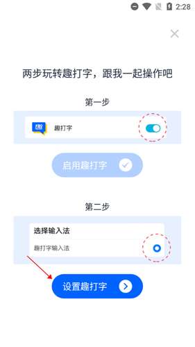 软件提交 专题合集 热门手游先在应用商店下载安装趣打字输入法,安装完成后进入手机系统设置,找到“语言和输入法”选项,点击进入后选择“默认输入法”,在已安装的输入法列表中找到趣打字输入法并选定,之后在需要输入文字时,系统就会自动调用趣打字输入法进行输入。