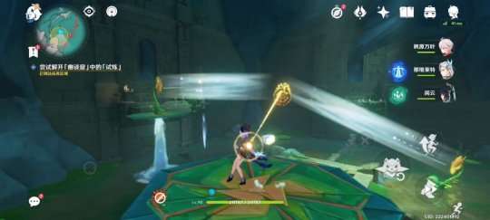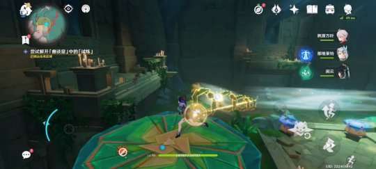 之后,前往荷叶平台,在我们利用此处的荷叶平台升起来到上方后,再指挥西梅公主穿过上方的花环回到我们身旁即可完成此次试炼