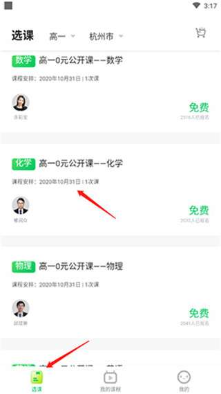 1、下载好app后点击打开,在选课板块中选好地区和年级,再选择想要学习的课程。