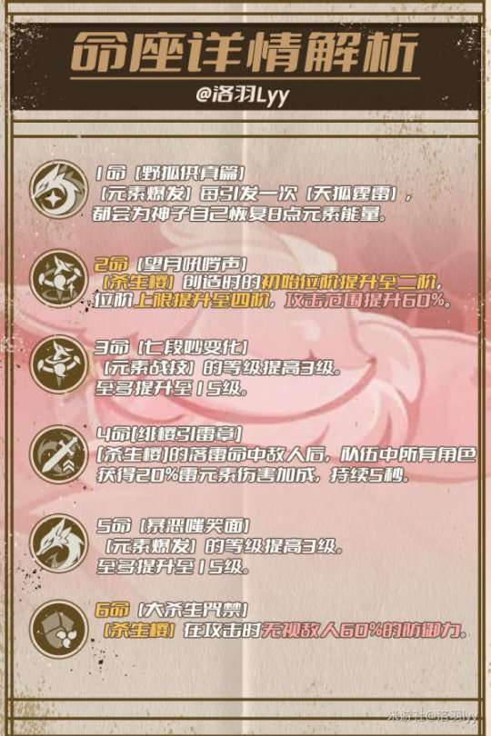 ◇4命:「杀生樱」的落雷命中敌人后,队伍中附近的所有角色获得20%雷元素伤害加成,持续5秒;
