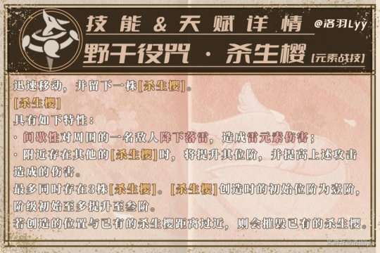 ◆「杀生樱」不锁面板,对敌人造成伤害时施加弱雷元素附着;