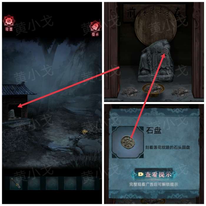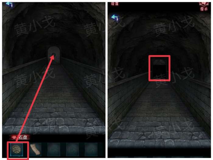 7.将【石盘】嵌入石门上的凹槽中,打开石门