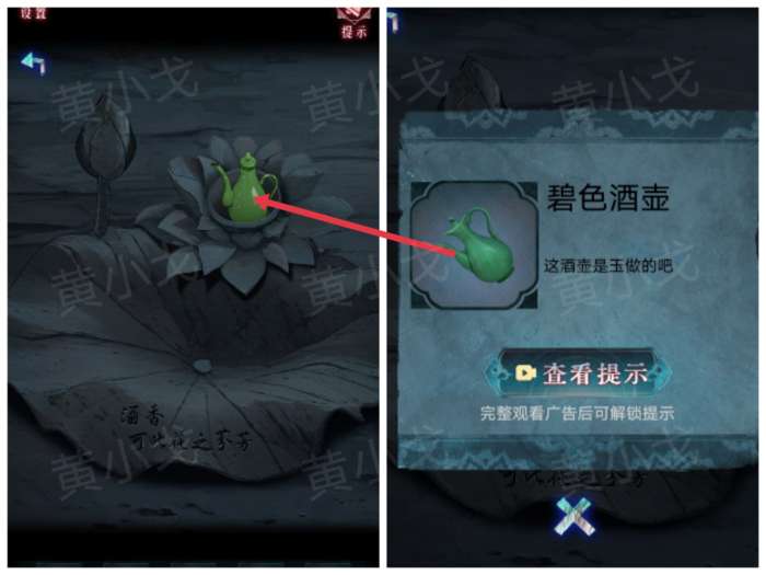 17.点击雕像,拿【碧色酒壶】给女人雕像