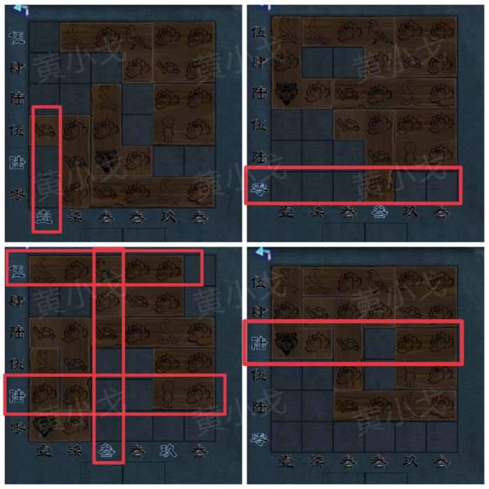 ②木块可自由移动至空余方格位置,但木块之间不能重叠。