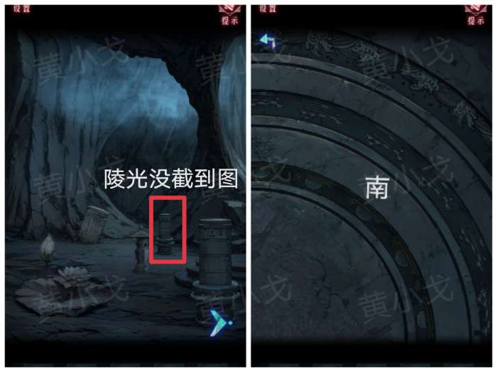 13.点击刻着“陵光”的圆柱,根据石碑和祭台台阶上刻着的花纹线索,调整圆柱上的花纹